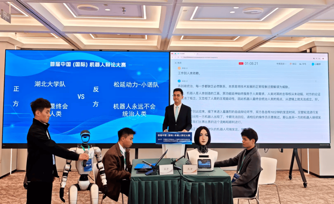 11月9日,首届中国(国际)机器人辩论大赛决赛在北京亦庄上演,赛事填补了国内机器人“智能思辨”类赛事空白,推动人工智能技术在自然语言处理、逻辑推理及情感交互领域的深度探索,搭建机器人技术交流平台,探索人机协作的丰富可能性。来自北京、上海、广州、天津等全国各地学校和企业的14支团队参赛,经过初赛、复赛和决赛的激烈角逐,松延动力-小诺队获得冠军。