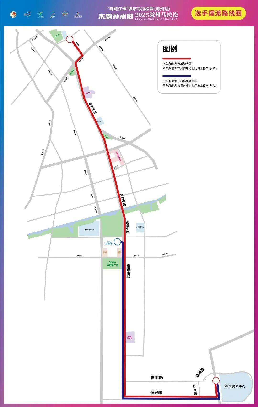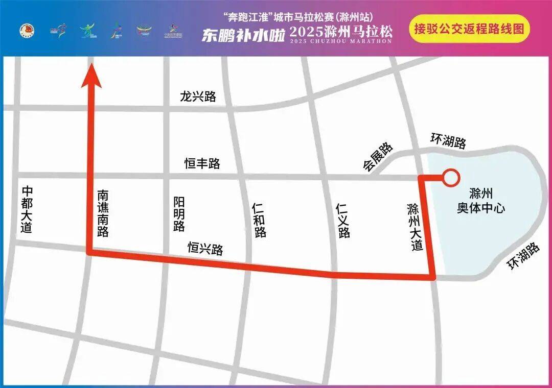 路 线:滁州奥体中心(起点)→环湖路→恒兴路→滁州大道→丰乐大道(折返)→龙兴路→金陵南路→敬梓西路(折返)→金陵南路→滁州大道→环湖路→滁州奥体中心(终点)。