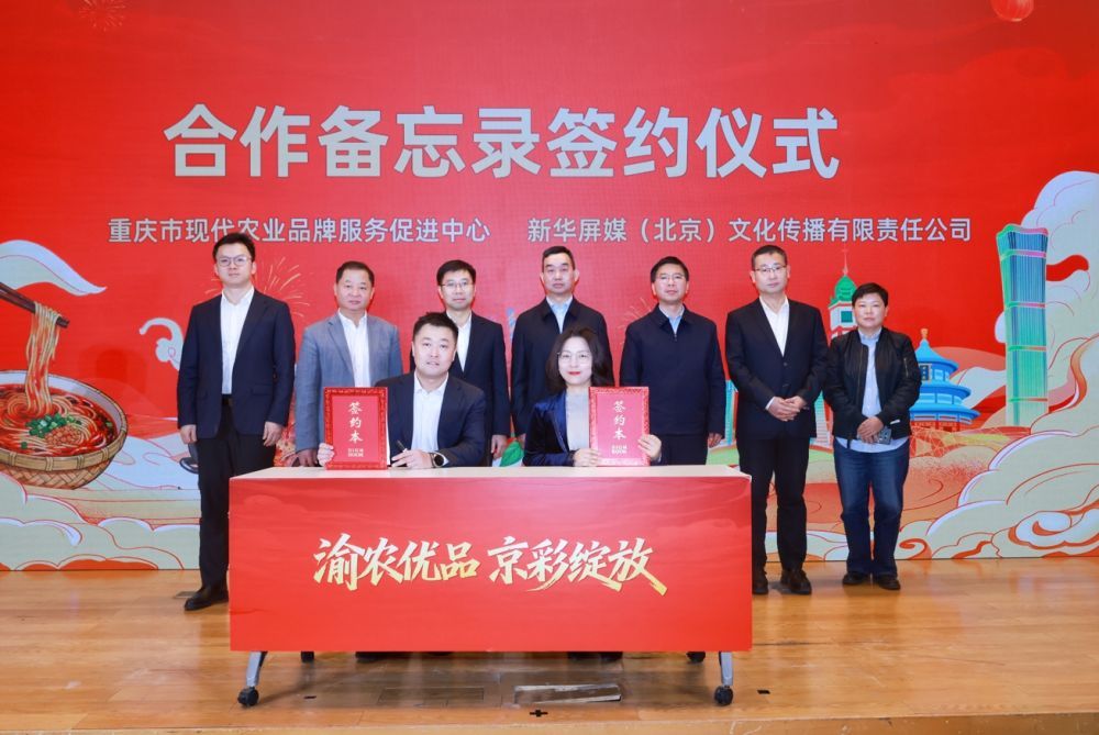 活动现场举行了两轮签约仪式。重庆市现代农业品牌服务促进中心与新华屏媒(北京)文化传播有限责任公司签署合作协议,双方将在品牌传播、内容共建等方面深化协同。重庆檬泰生物科技有限公司、重庆市涪陵区洪丽食品有限责任公司、重庆林夕畜牧科技有限公司、重庆九八六食品有限公司、重庆丰都三和实业有限公司等五家重庆重点企业,与北京新发地直播电商基地——新发地绿菜田(北京)科技有限公司集中签署了战略合作协议。这标志着巴渝“土特产”与首都大型流通平台建立了稳定、直接的产销链接,为产品进入京津冀及全国市场开辟了高效通道。