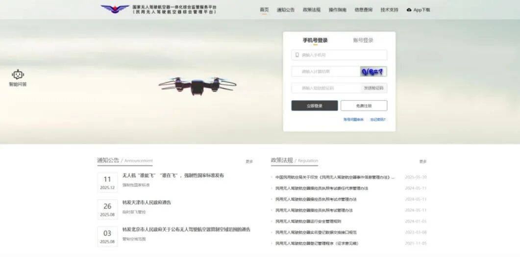 飞行活动前,务必通过“国家无人驾驶航空器一体化综合监管服务平台(民用无人驾驶航空器综合管理平台)”查询计划飞行区域是否为管制空域或禁飞区。